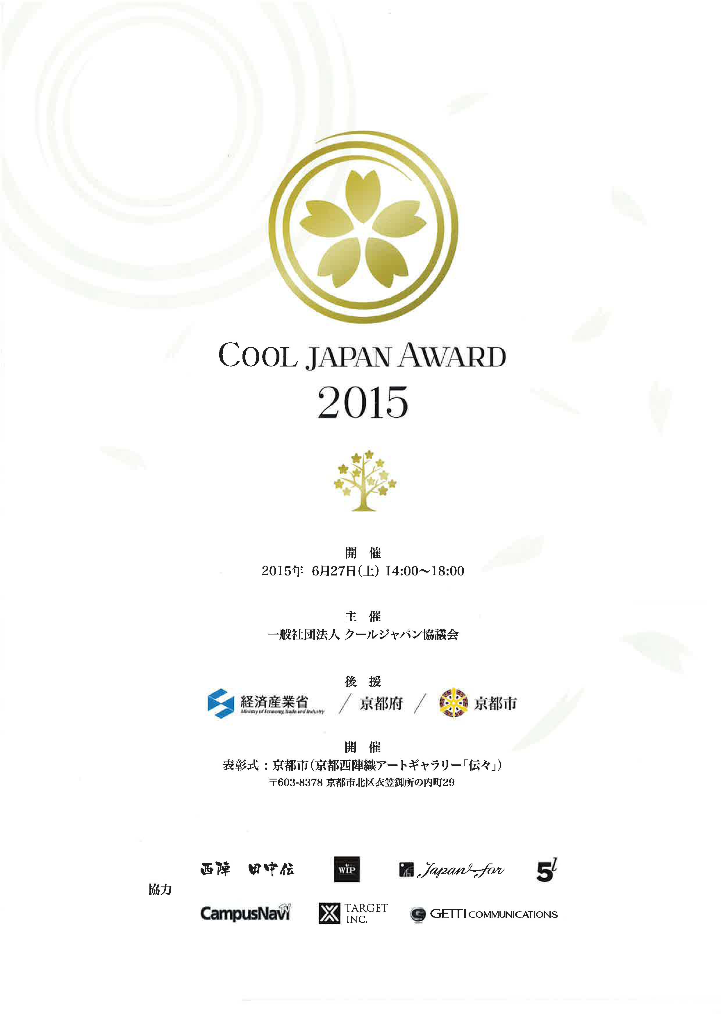週末、外国人の視点で選ぶ「クールジャパンアワード2015」の第一回式典(京都)に理事として参列。受賞作品は以下の18点。